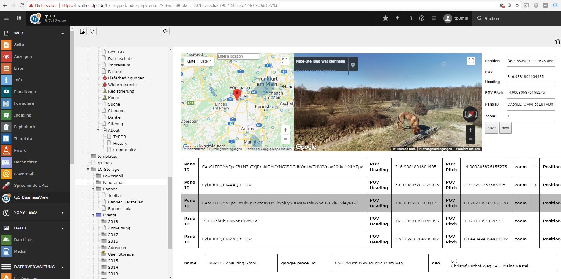 Unsere Integration ermöglicht Ihnen über typo3 Overlays und POI's innerhalb Ihres virtuellen Rundgang zu definieren und steuern.